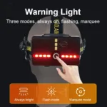 A variety of light source options to meet the needs of different occasions, the lamp head can be adjusted at 90° and the card position is firm, easy to control the lighting angle, long battery life, with induction mode,Type-C fast charging, power display, adjustable elastic headlight belt, breathable and non-slip, tail security indicator