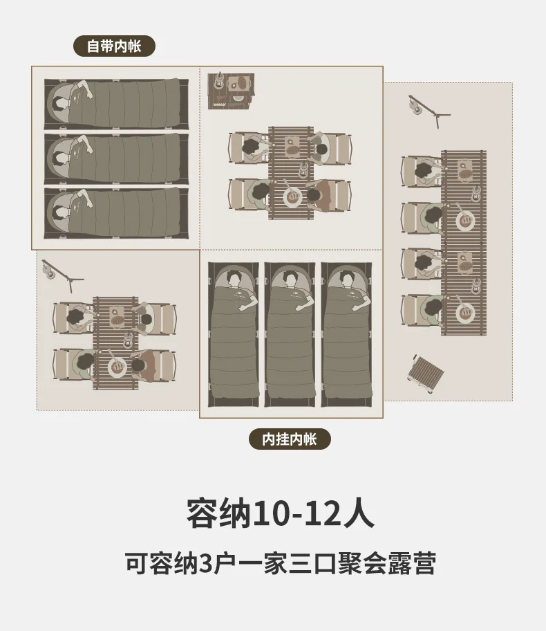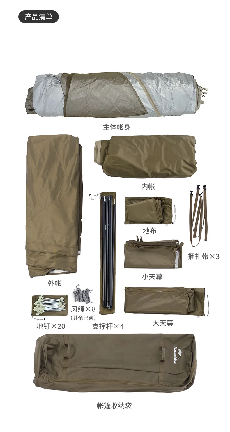 Naturehike 2023 New Outdoor Village Suite Ridge Quick Opening Tent Outdoor Camping Large Space Three Bedroom Two Hall Tent