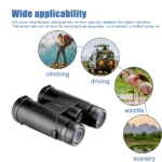 10X power magnification and large field of view: 294ft at 1000yds, specially designed for outdoor activities such as climbing, hiking, driving, watching wildlife and scenery. This power can also be used for watching large stage plays, vocal concerts, sports games, etc.